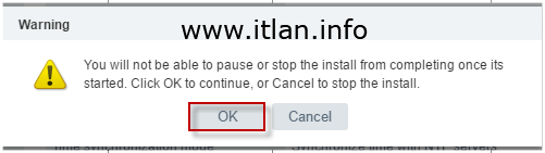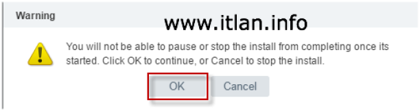 Paso 34: El siguiente aviso, nos indica que no podremos parar ni pausar la instalación una vez comenzado el proceso. Pulsamos "OK" para continuar.