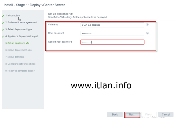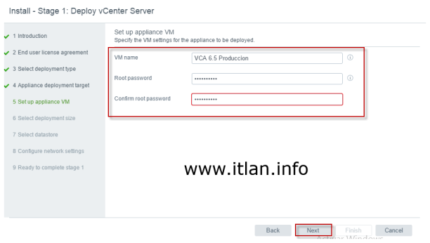 (Paso 14) cuando realizamos el despliegue de éste, y que deseamos utilizar con vCenter Server Appliance 6.5. Finalmente debemos especificar las credenciales del usuario