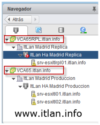 Paso 45: Como podéis observar al entrar en nuestro vCenter mediante Web Client, ya nos aparecen los dos vCenter que podremos administrar con más agilidad.