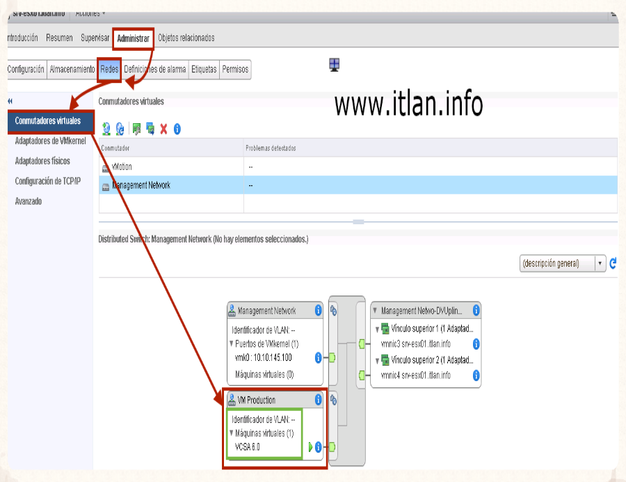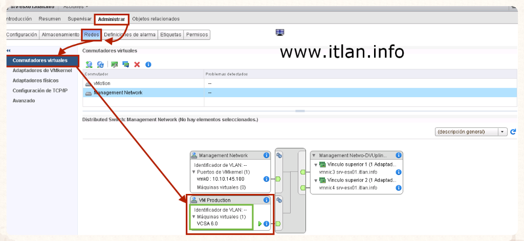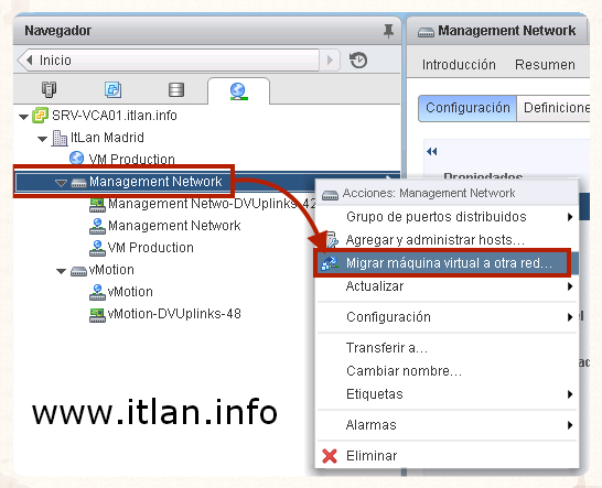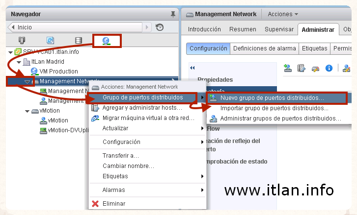Continuamos con los VDS y excatamente en el punto que acabamos el artículo anterior. Si recordais, dejamos que el tráfico de nuestras VM, saliese por nuestra Red de Gestión "Management", como ya sabeis funciona correctamente, pero no es una buena practica, debemos de segregar el tráfico, por eso vamos a crear un nuevo de grupo de puertos distribuidos (dvPortGroup) para nuestras VM en nuestro primer creado VDS "Management Network", así separaremos nistro tráfico de gestión del tráfico de las VM.
